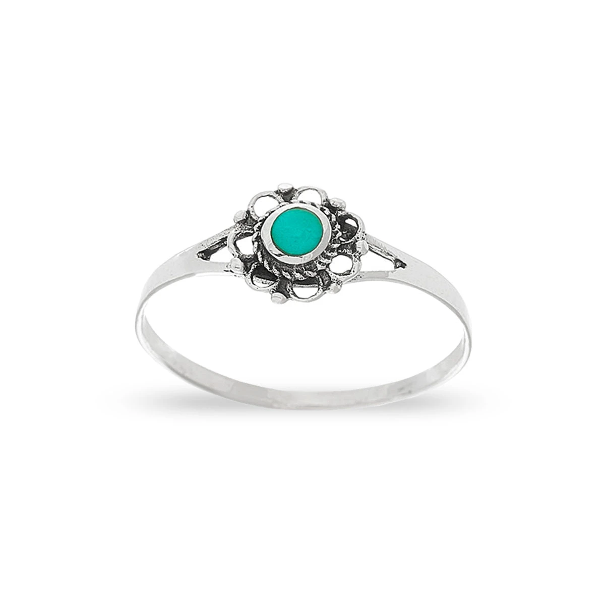 Anillo de Plata 925 con pieza central forma de flor étnica con interior de piedra natural Turquesa, Onix o Nácar