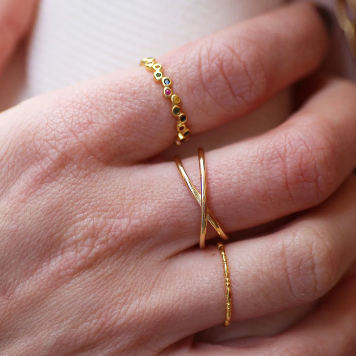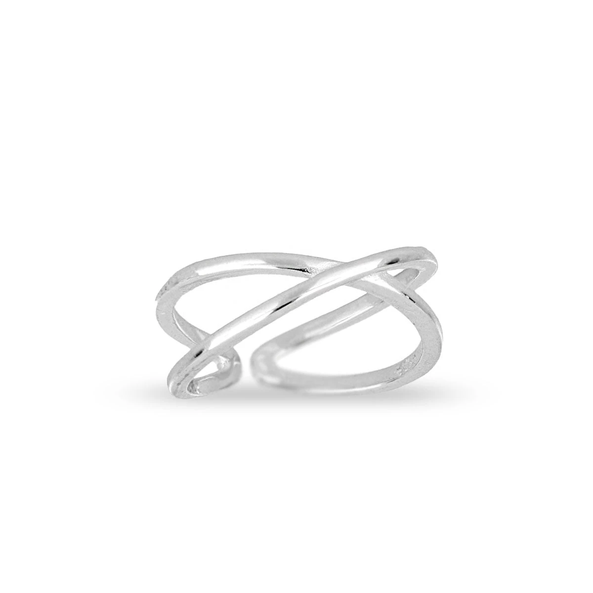 Anillo de plata ajustable compuesto por dos anillos que se cruzan.