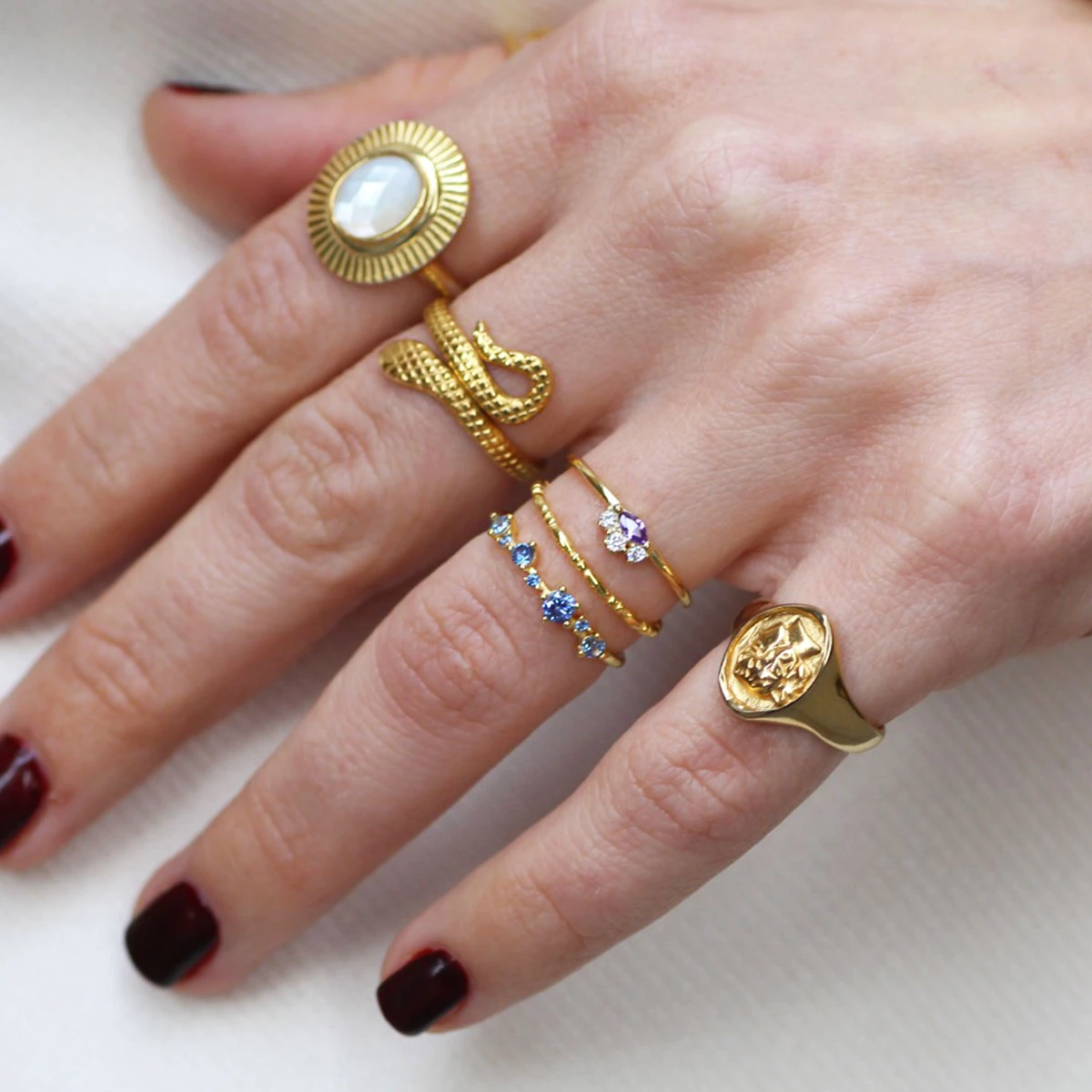 Anillo de plata con topacios azules que cambian de tamaño. Elegancia y distinción.