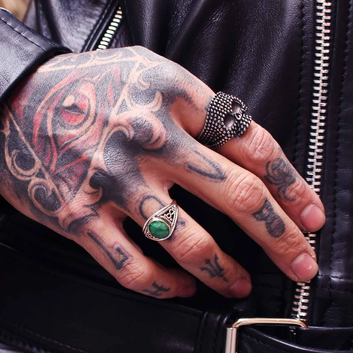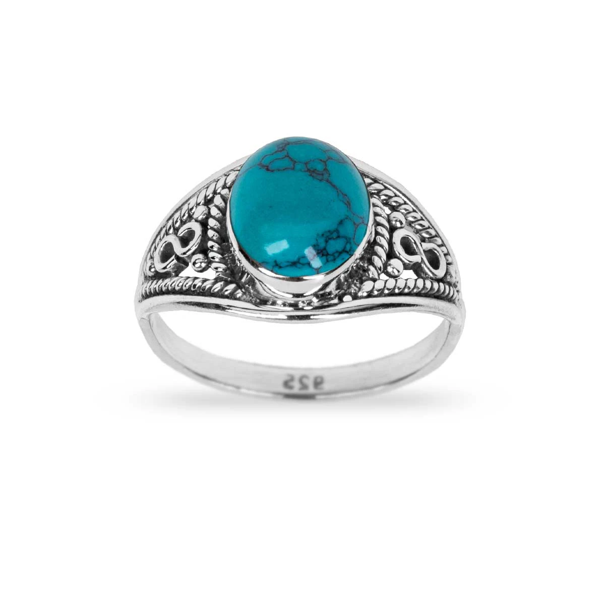 Anillo hecho a mano, destaca por sus detalles labrados y piedra con forma oval.