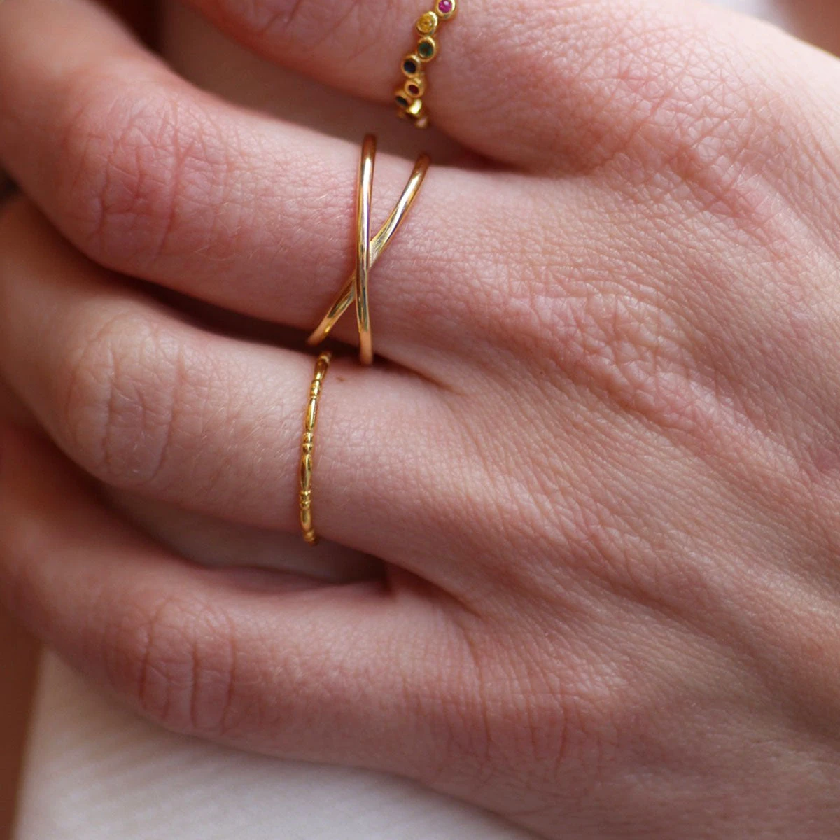 Anillo de plata con un patrón clasico torneado en la parte superior.