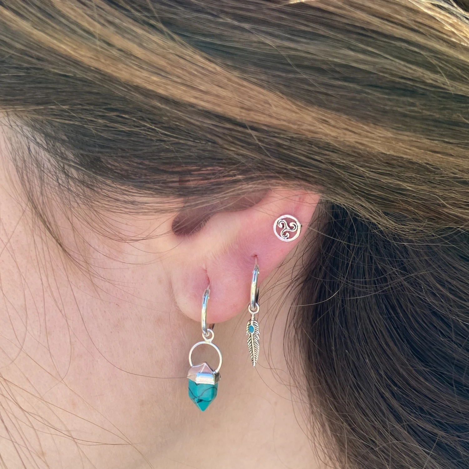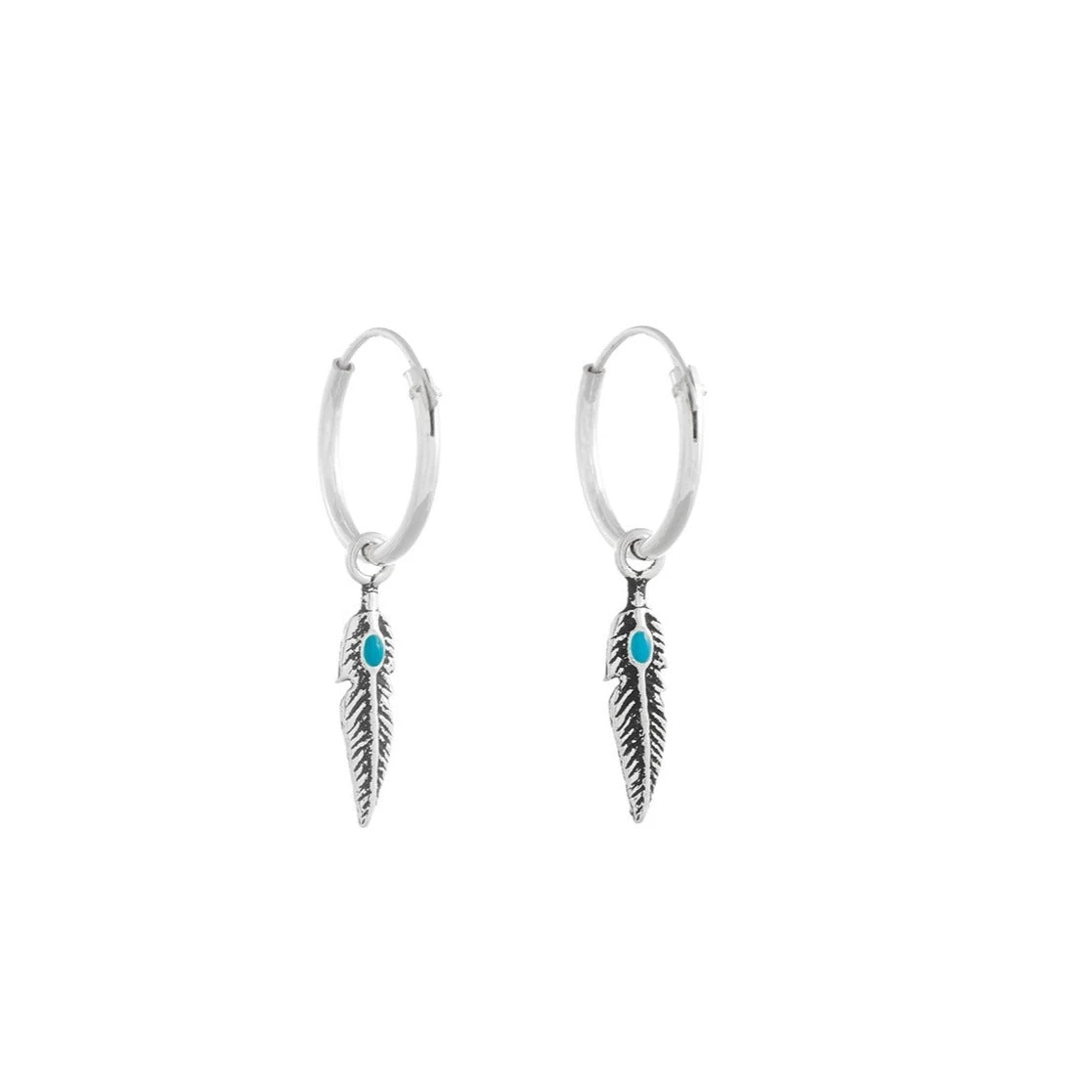 Pendientes Aros de plata para mujer y hombre con colgantes de Pluma con pequeño toque turquesa