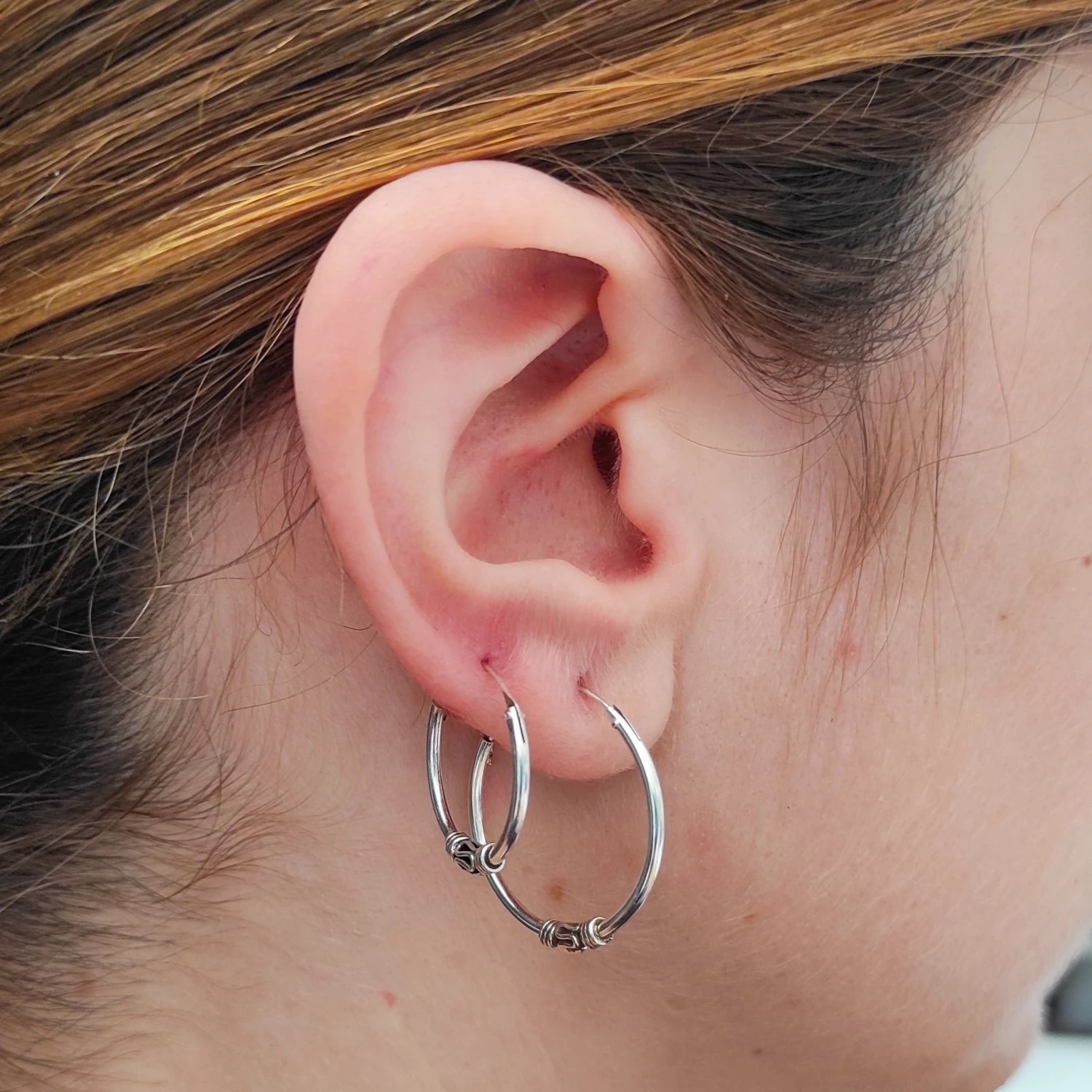 Los aros de plata bali son unos pendientes de aro fabricados a mano que destacan por sus detalles étnicos que tanto gustan. Gracias a su diseño unisex también se usan como pendientes de aro para hombre. Fabricado en plata de ley