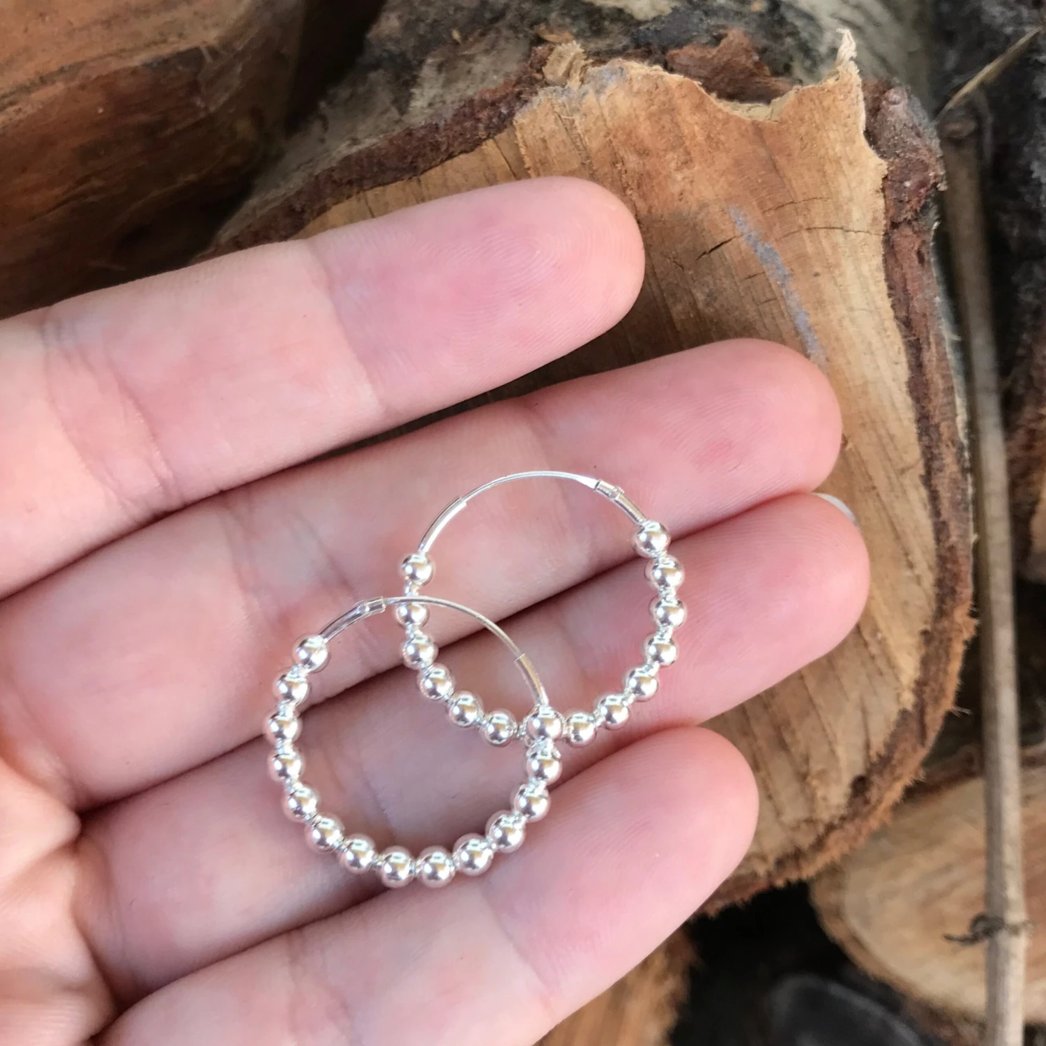 Aros de Plata 925 con bolitas antiestrés. El cierre es de tubo y las bolitas no se salen, las puedes girar sobre el pendiente para tener una sensación antiestrés y relajante.