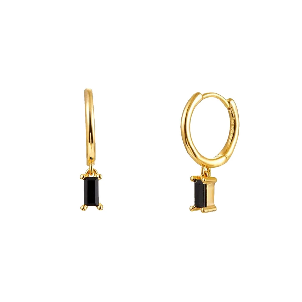 Aros de plata con colgantes de rectángulos violeta, esmeralda, negros o blancos