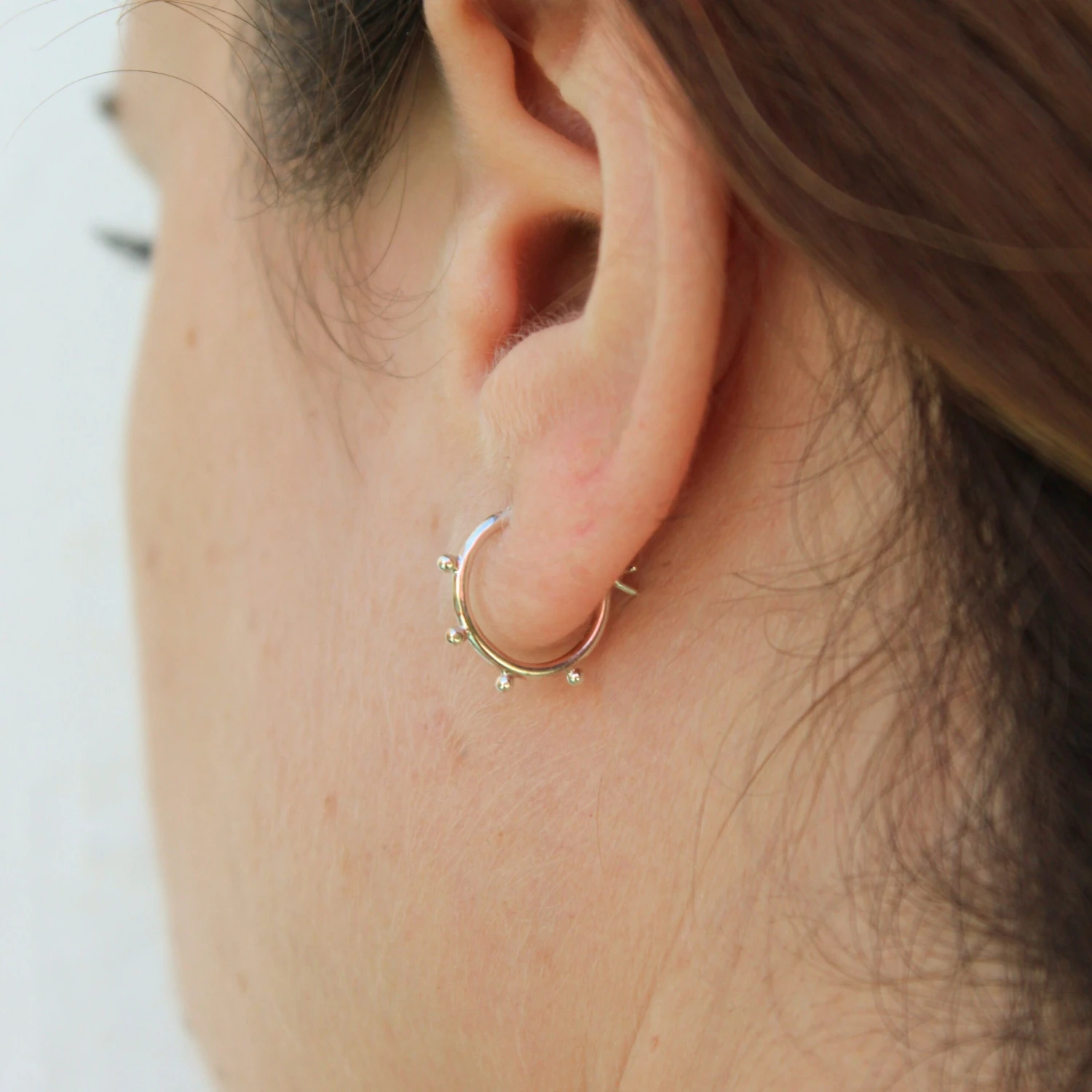 Aros de Bolitas Fabricado en Plata925, con un cierre de pestaña fáciles de poner y quitar, tienen un diseño muy juvenil y fresco y étnico.