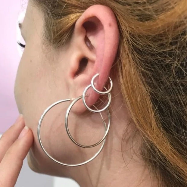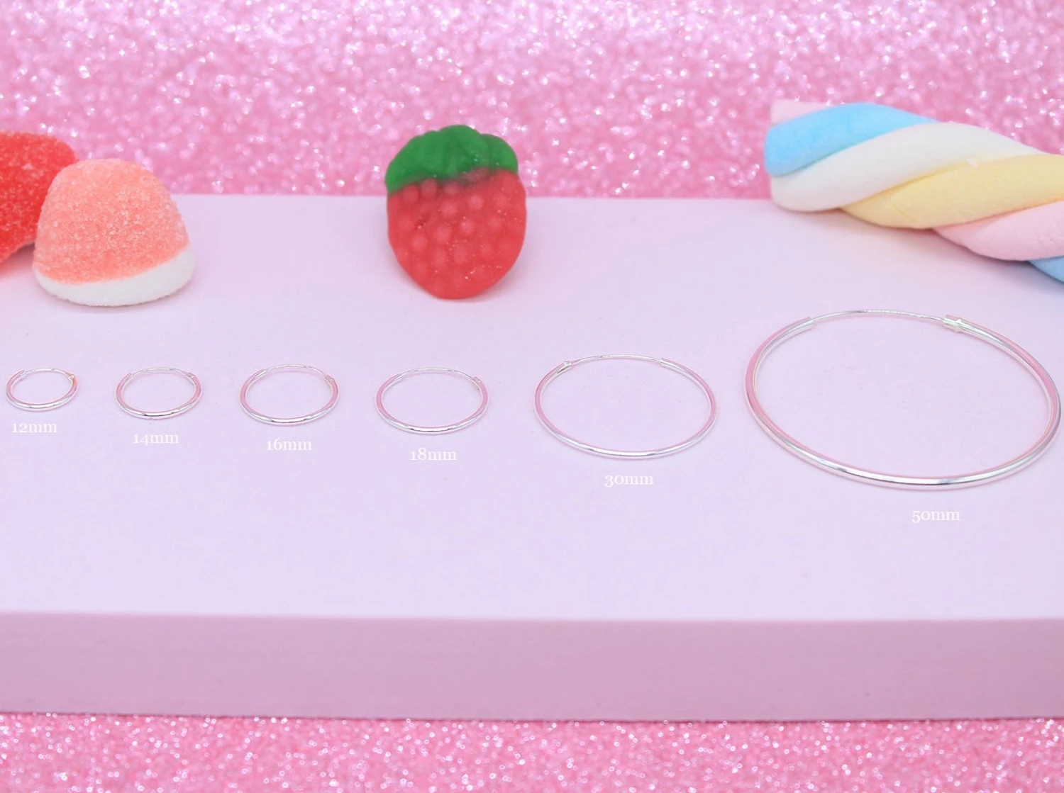 Aros lisos básicos para el día a día, ideales para amantes de los aros si quieres formar tu propia combinación de aritos formando escalera con distintas perforaciones o llevar tu par de aros de plata para completar tu look, disponibles en 6 tamaños distintos