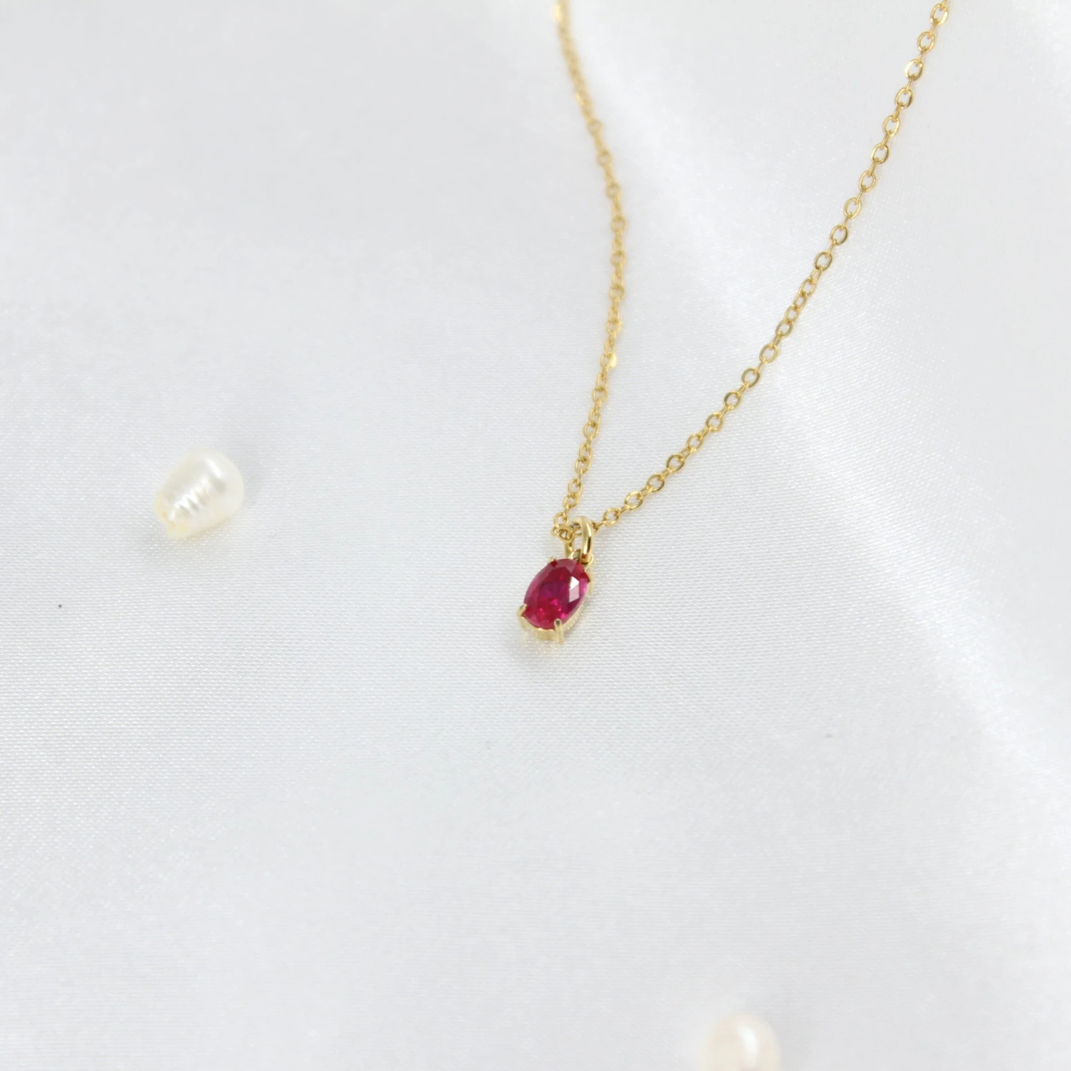 Collar pequeño fino circonita color Rubí