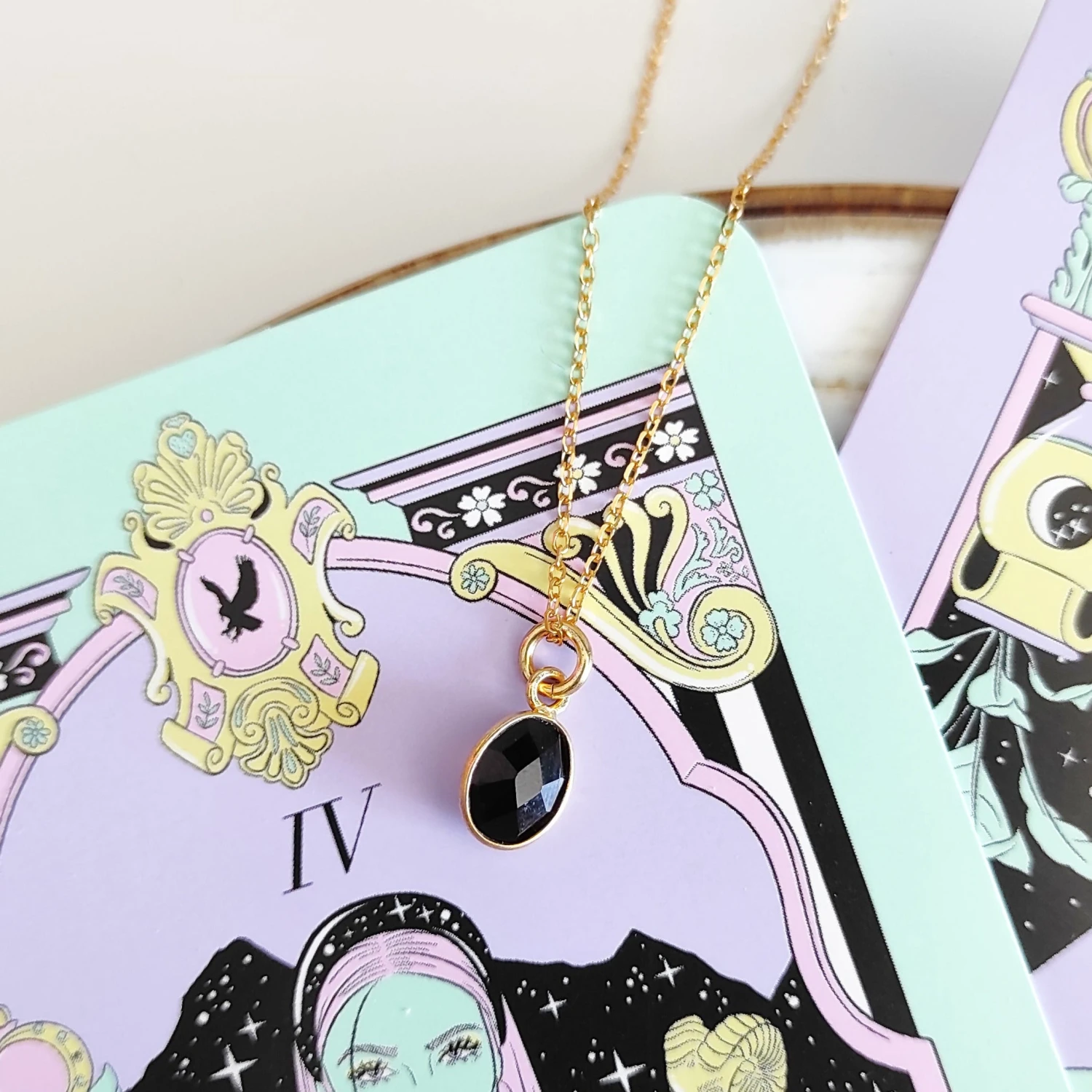 Collar de plata bañada en oro con cadena de eslabones y colgante en forma de gota.