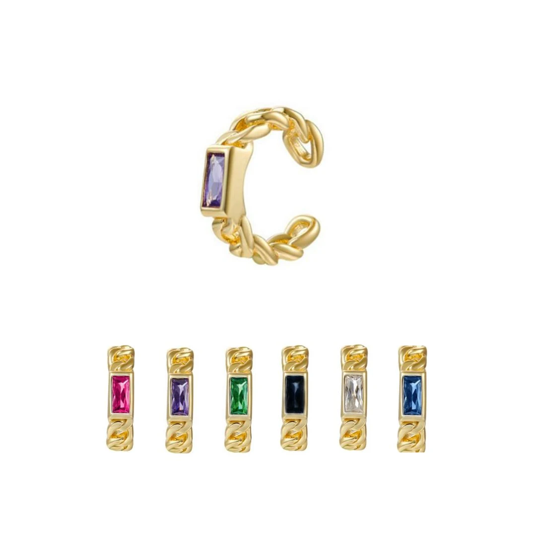 Con este piercing falso que simula un aro trenzado con un topacio de color vas a darle un giro a tu combinación de pendientes. Esta hecho en plata de ley bañada en oro y se adapta a tu oreja fácilmente.