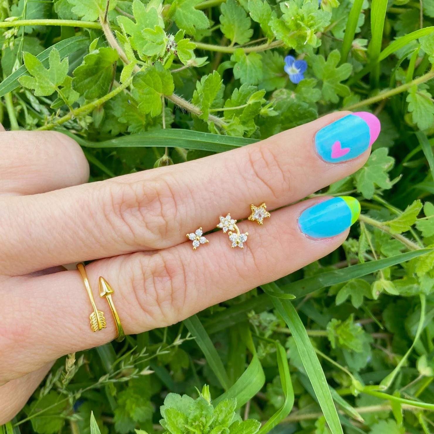 Anillo Flecha, Piercing Trébol, Piercing Flor Shine y Piercing Estrella