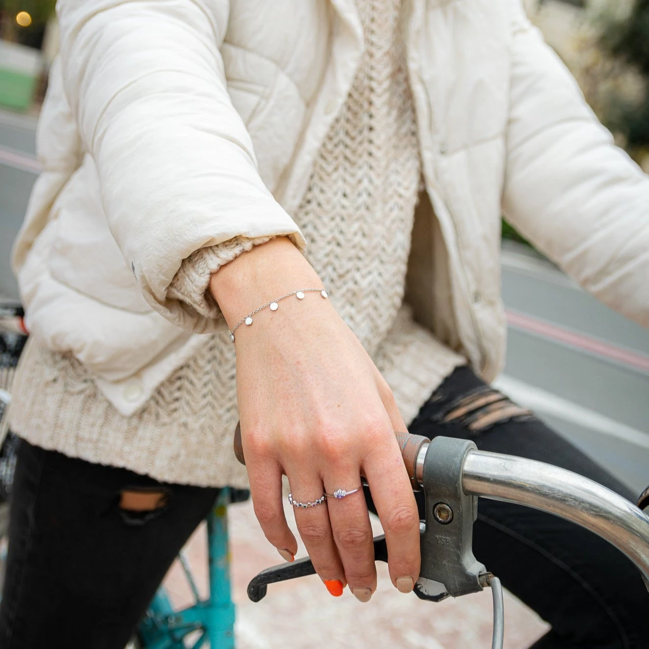 Una pulsera de acero original para mujer con chapitas redondas. Es una pulsera fina y elegante ideal para llevar a diario o para hacer un detalle a cualquier persona ya que no hay a quién no le guste.