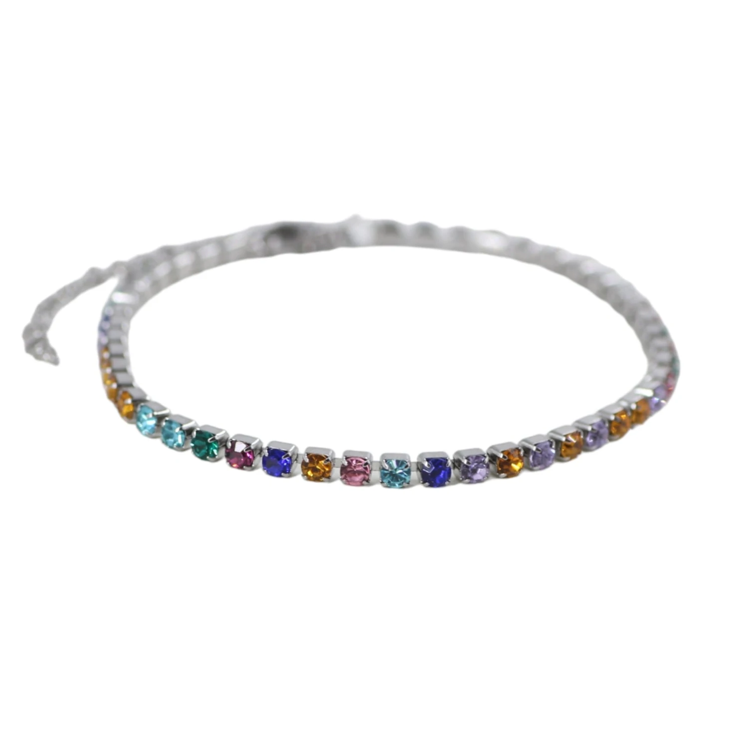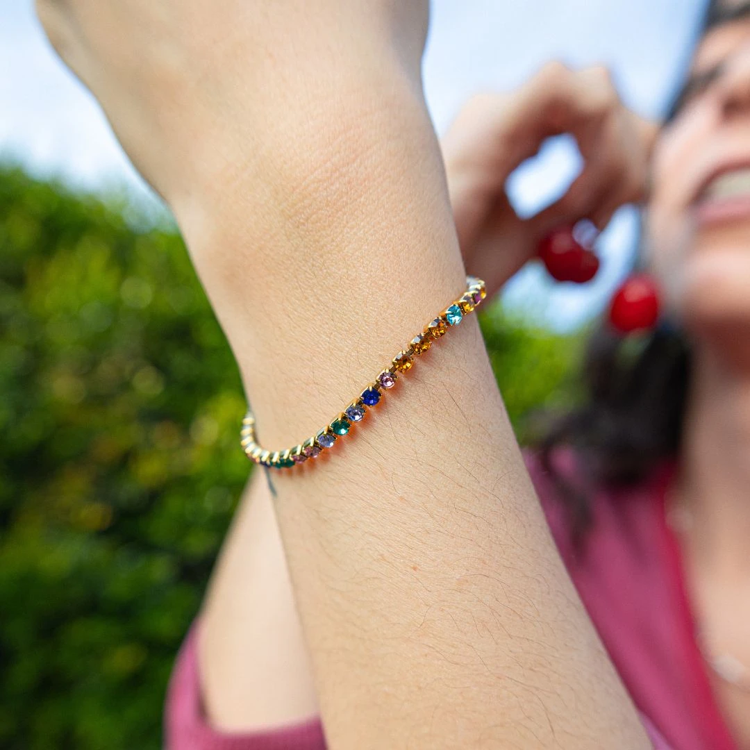 Pulsera Tenis circonitas de colores, preciosa y con colores vibrantes y muy brillantes a elegir entre dorado o plateado